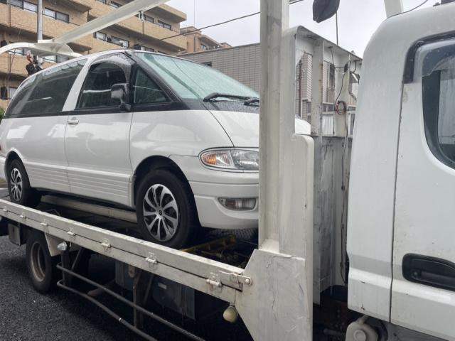 足立区のマンション駐車場まで故障車の廃車引き取り作業に出動しました。故障車の原因は『エンジンが吹けない』の車両で車検が切れたばかりの「トヨタ・エスティマ/1999年式)」です。故障車の廃車引き取り/買い取りプランによるご依頼を受け、足立区のマンション駐車場よりレッカー車による引き取り~遺産相続の車の廃車手続きまでの代行を実施しました。